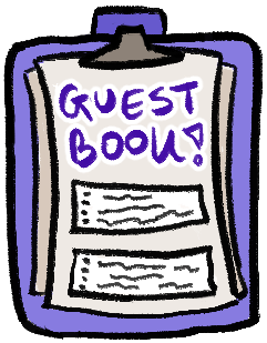 +Added drawn cursors. Made main pg a bit wider. +Guestbook created & added. +Music embedded. +QUIZ WALL PG. +More quizzes +Ext link buttons +Moved status cafe feed.